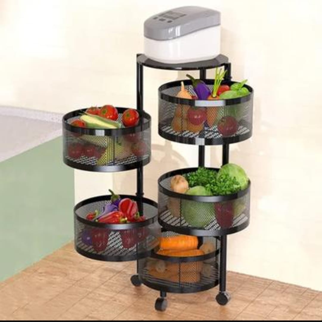 Be the first to review “5 Layer Rotating Kitchen Rack 360 Degree Floor Organizer with Wheels for Vegetables and Fruits” Cancel reply