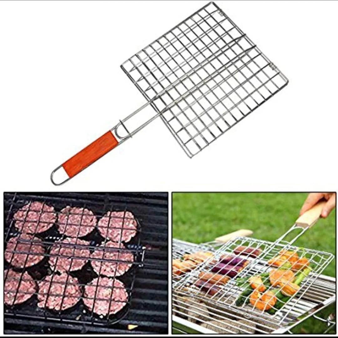 - Good quality stainless steel barbecue longhandle square basket grill, perfect for grilling burgers, fish and vegetables.